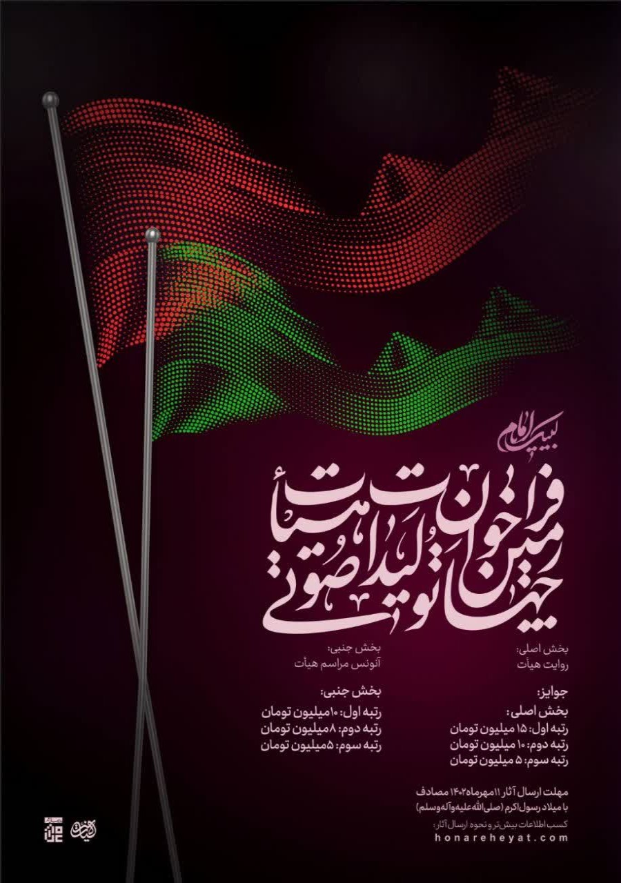 اختتامیه سوگوارههای عاشورایی هیأت برگزار شد. بهگزارش روابطعمومی هنرهیأت، اختتامیه سوگواره های عاشورایی هیات جمعه۲۴خرداد ماه در مشهد مقدس برگزار شد. اسامی هنرمندان صاحب رتبه به شرح ذیل میباشد